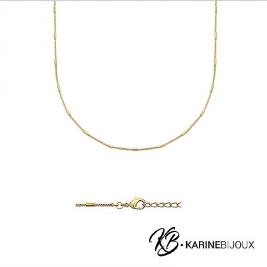 La chaîne maille forçat, réglable entre 42 et 45 cm grâce aux anneaux de rappel, permet d’ajuster le collier selon vos préférences. Avec un diamètre de perle de 0,7 cm, ce bijou est idéal pour ajouter une note discrète de sophistication à vos tenues.