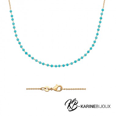 58,00 €Le collier Kitti en plaqué or 18 carats est un bijou délicat orné de petites perles en quartzite bleue qui ajoutent une touche de couleur subtile à votre décolleté. Montées sur une chaîne maille forçat, les perles de 0,3 cm de large confèrent à ce collier une allure raffinée et légère, idéale pour un style élégant au quotidien.