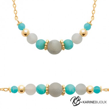 La chaîne est ajustable entre 42 et 45 cm, offrant une flexibilité parfaite pour s’adapter à toutes vos préférences. Avec une perle centrale de 0,7 cm, le collier Maena est idéal pour celles qui recherchent un bijou à la fois discret et élégant, rehaussé par la beauté naturelle des pierres.