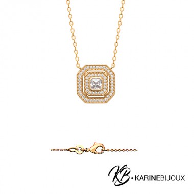 93,00 €Le collier Lucinda en plaqué or 18 carats incarne l'élégance et le raffinement avec son pendentif octogonal serti de petits oxydes scintillants, imitant le diamant, et d'un zirconium central monté en serti clos. Ce pendentif sophistiqué de 1,4 cm de diamètre ajoute une touche de brillance subtile à chaque tenue. Suspendu à une chaîne maille forçat ajustable entre 42 et 45 cm, il s'adapte à vos préférences et à toutes vos occasions.