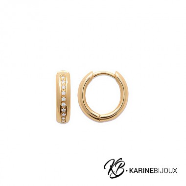 62,00 €La paire de boucles d’oreilles Lénie, en plaqué or 18 carats, est conçue pour sublimer votre style avec élégance. Ornée de petits oxydes de zirconium qui scintillent délicatement, chaque anneau capte et reflète la lumière pour une allure radieuse.