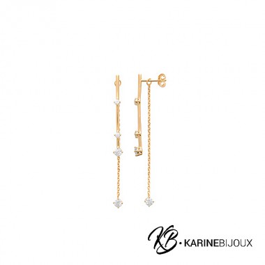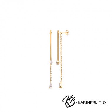 63,00 €Les boucles d’oreilles chaînettes Sarya, en plaqué or 18 carats, ajoutent une élégance simple et intemporelle à votre look. Chaque boucle se compose de tiges droites ornées de zirconiums étincelants qui captent la lumière, accompagnées de chaînettes délicates qui descendent gracieusement, créant un mouvement subtil et sophistiqué.