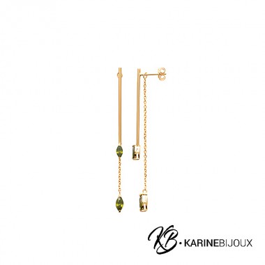 62,00 €Les boucles d'oreilles chaînettes Lénaïs en plaqué or 18 carats ajoutent une touche d'élégance et de simplicité à votre style. Elles sont composées de tiges droites et lisses qui se fixent délicatement à l'oreille, prolongées par de fines chaînettes ornées de lumineux oxydes teintés vert olive. Ce détail apporte une touche d'éclat subtil, rehaussant votre look avec sophistication. Leur design épuré et contemporain fait de ces boucles le choix idéal pour toutes les occasions, du quotidien aux événements spéciaux.