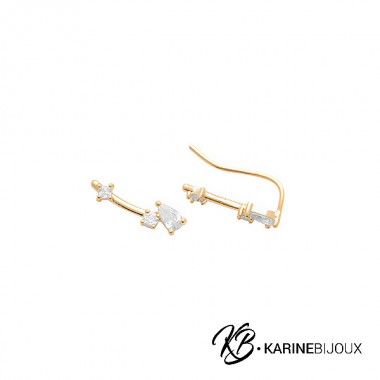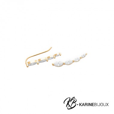 Réalisées en plaqué or 18 carats, elles sont ornées de petits oxydes de zirconium en forme de navette, pour un éclat discret et raffiné, semblable à celui des diamants.