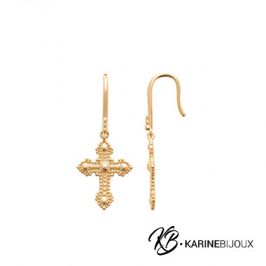 42,00 €Les boucles d’oreilles Hina en plaqué or 18 carats offrent un design élégant et subtil avec un motif de croix finement travaillé. Chaque croix est décorée de petites boules dorées et d'un délicat motif filigrané, ajoutant une touche de finesse et de sophistication. Ces détails minutieux captivent la lumière, créant un éclat discret et raffiné.