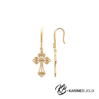 Suspendues à de fins crochets, elles sont confortables et légères, idéales pour sublimer une tenue tout en restant confortables à porter. Ce modèle incarne la beauté intemporelle de la symbolique religieuse et l’élégance artisanale.