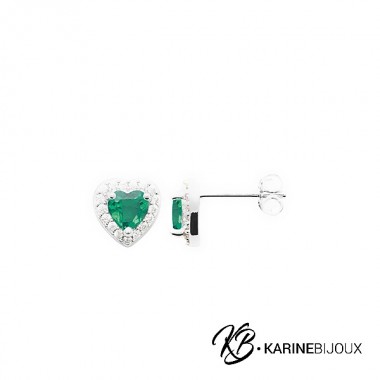 Les puces d'oreilles Amina en argent rhodié sont délicatement conçues en forme de cœur, mettant en valeur une pierre centrale imitation émeraude. La pierre est entourée d'un halo serti d'oxydes de zirconium, ajoutant de l'éclat et un effet lumineux subtil. Ce modèle raffiné est parfait pour apporter une touche d’élégance à vos tenues, que ce soit pour un usage quotidien ou pour une occasion spéciale.