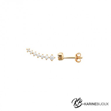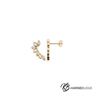 52,00 €Ces boucles lobes d'oreilles montantes en plaqué or 18 carats se distinguent par leur design végétal d'une grande finesse. Elles épousent la courbe du lobe avec une succession de navettes alternant doré lisse et oxydes de zirconium taillés en marquise. Cet agencement crée un éclat lumineux. Une pièce intemporelle au fini éclatant, idéale pour habiller l'oreille avec une élégance moderne et un raffinement résolument féminin.