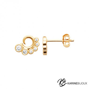 46,00 €Ces puces d'oreilles en plaqué or 18 carats se distinguent par leur design en volute. Elles présentent une fine ligne incurvée, soulignée par une graduation de six oxydes de zirconium ronds pour un éclat lumineux. Cet agencement en éventail crée un fini éclatant qui épouse harmonieusement le lobe. Une pièce intemporelle et sculpturale, idéale pour illuminer votre visage avec une élégance moderne et un raffinement résolument féminin.
