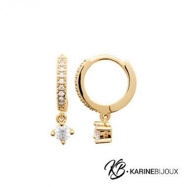 Chaque anneau est serti d'une rangée d'oxydes de zirconium scintillants, complétée par une pampille solitaire montée sur griffes qui danse au gré de vos mouvements.
