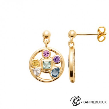 66,00 €Ces boucles d'oreilles en plaqué or 18 carats se distinguent par un assemblage géométrique de cristaux aux teintes éclatantes. Autour d'une pierre centrale, une couronne de cristaux ronds et ovales décline des nuances bleu azur, jaune ambre et violine. Cet agencement crée un rendu lumineux. Pièces intemporelles au fini éclatant, elles captent la lumière à chaque mouvement pour illuminer votre visage.
