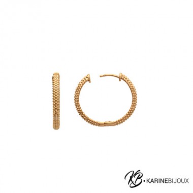 62,00 €Ces superbes créoles en plaqué or 18 carats revisitent un grand classique avec une texture audacieuse et raffinée. Chaque anneau est entièrement recouvert de petites billes dorées, créant un relief lumineux. La finition polie offre un éclat qui sublime le visage à chaque mouvement. Pièce intemporelle et chic, ces boucles d'oreilles allient la force d'un design texturé à la douceur du doré pour une élégance moderne parfaite en toute occasion.