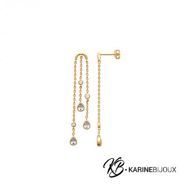 86,00 €Les boucles d'oreilles Héliona en plaqué or 18 carats sont conçues pour offrir une touche de sophistication et d'élégance à votre look. Chaque boucle est composée de trois chaînettes délicates, ornées de scintillants oxydes de zirconium montés en serti clos, capturant et reflétant la lumière pour un effet aéré et lumineux. Ce modèle raffiné est idéal pour sublimer votre visage et rehausser une tenue, que ce soit pour le quotidien ou des occasions spéciales.