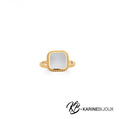 55,00 €Cette bague chic en plaqué or 18 carats est ornée d'un pavé en véritable nacre aux multiples reflets, agrémentée de petites boules sur le contour.