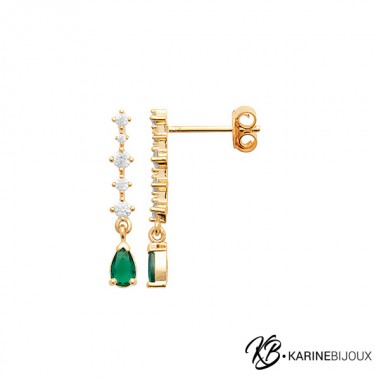 42,00 €Ces puces d'oreilles en plaqué or 18 carats se portent sur le lobe, offrant une allure d'une élégance rare. Elles arborent en leur centre un oxyde de zirconium teinté vert émeraude. Cette pierre centrale est magnifiée par un halo de petits cristaux comme le diamant qui accentuent son éclat lumineux et créent un contraste solaire avec le doré.