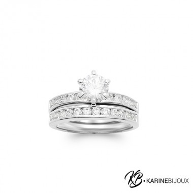79,00 €L'élégance absolue avec ce prestigieux duo en argent 925/000 rhodié. Ce modèle simule la superposition d'un solitaire majestueux et d'une alliance scintillante. Le corps de bague, composé de deux rangs sertis d'oxydes de zirconium, mène le regard vers un zirconium central éblouissant maintenu par six griffes délicates. Un bijou d'exception qui capture la lumière sous tous les angles, protégé par un bain de rhodium pour une brillance éternelle qui ne ternit jamais.