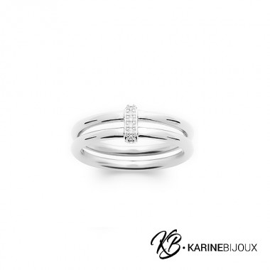 69,00 €Découvrez cette élégante bague composée de deux anneaux lisses en argent 925/000 rhodié, reliés par un lien délicatement orné de petits oxydes de zirconium.