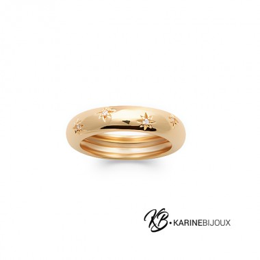Le design raffiné de l’anneau est embelli par de délicates petites étoiles, chacune centrée par un petit oxyde de zirconium étincelant. Ces étoiles apportent une note de fantaisie et de charme à ce bijou élégant.