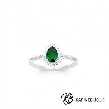 Au centre, un oxyde de zirconium en forme de poire imitant l'émeraude est majestueusement entouré de scintillants oxydes de zirconium, créant un spectacle éblouissant.
