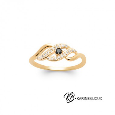 Cette pièce unique est ornée d’un petit oxyde de zirconium teinté noir, apportant un éclat subtil et raffiné. Le design fluide et torsadé, embelli de petits oxydes de zirconium, met en valeur la pierre centrale et capture la lumière pour un effet scintillant à la fois discret et captivant.