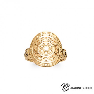 46,00 €Laissez-vous envoûter par le charme hypnotique de la bague L'Aura d'Orient. Véritable prouesse d'orfèvrerie, cette pièce en plaqué or se distingue par son plateau central incurvée, orné de ciselures d'une finesse rare. Ses motifs en dentelle et ses délicats reliefs perlés capturent la lumière à chaque mouvement, offrant un éclat solaire irrésistible à votre main.