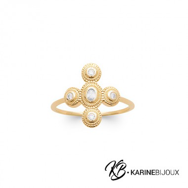 Au centre, de subtils oxydes de zirconium ajoutent une touche de raffinement, faisant de cette bague un incontournable pour toute collection de bijoux.
