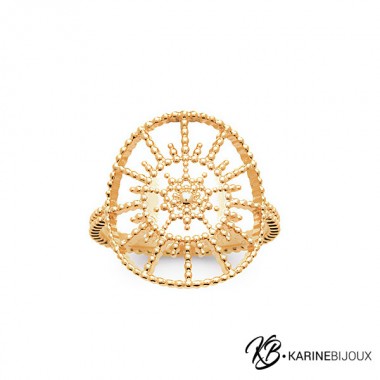 Le travail minutieux sur les détails du motif soleil et des petites boules met en valeur le raffinement exceptionnel de cette bague.