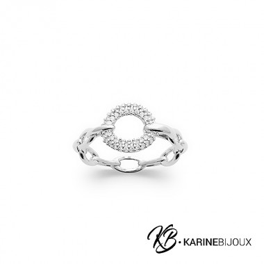 59,00 €Minimaliste et raffinée, cette bague en argent 925 rhodié est ornée d'un cercle serti d'oxydes de zirconium, rattaché à un anneau effet chaîne rigide.
