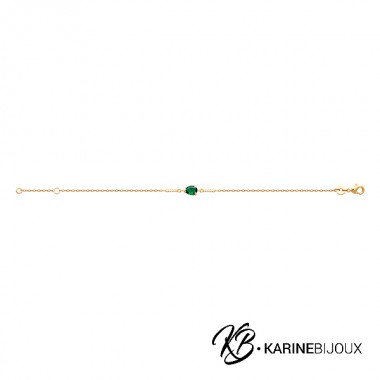 Ce bijou raffiné est orné d’un oxyde vert central imitant l’émeraude, qui apporte une luminosité subtile à votre poignet. De petits oxydes supplémentaires embellissent le bracelet, ajoutant un éclat délicat. La chaîne en plaqué or est réglable de 16 à 18 cm, grâce à ses maillons ajustables, pour un confort parfait. Idéal pour les amateurs de bijoux délicats et élégants, ce bracelet complète parfaitement toutes vos tenues.