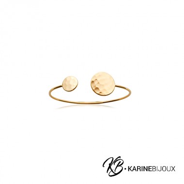 Ce bracelet ouvert est orné de deux élégantes pastilles martelées, apportant une touche de texture et de modernité à ce design classique. Avec un diamètre de 58 mm, il s’ajuste parfaitement à votre poignet et offre une allure sophistiquée. Parfait pour celles qui recherchent un bijou polyvalent et raffiné, idéal pour rehausser toutes vos tenues avec une touche d’élégance.