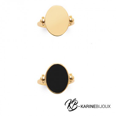 Bague Nina réversible Email Noir Plaqué Or.