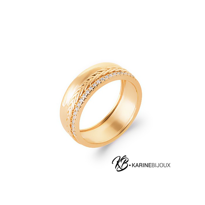Cet anneau alliance en plaqué or 18 carats se distingue par son design unique et élégant.