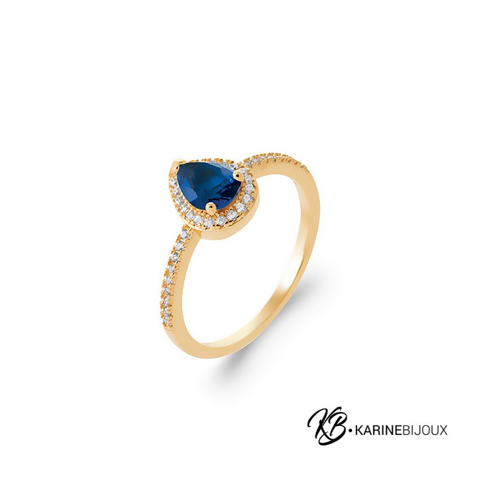 L'Impériale bague Solitaire forme poire bleu saphir en Plaqué Or