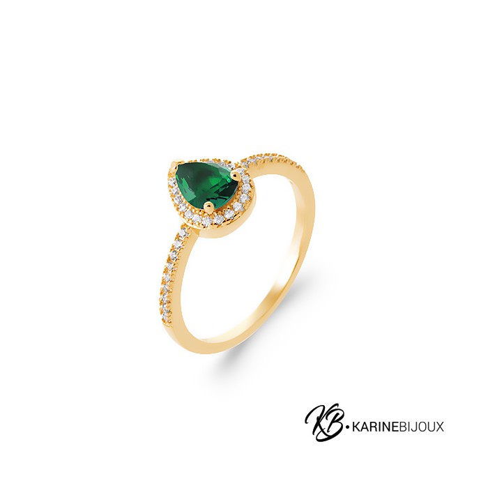 Bague Majesté solitaire poire couleur vert émeraude plaqué or.