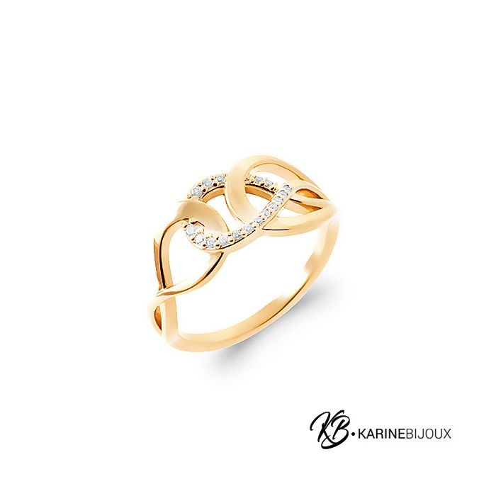 Bague "L'Infini" Double anneau entrelacé et cristaux en Plaqué Or 18 carats