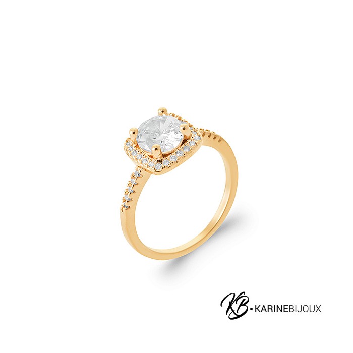 "Éclat Éternel" Solitaire intemporel et anneau serti plaqué or.