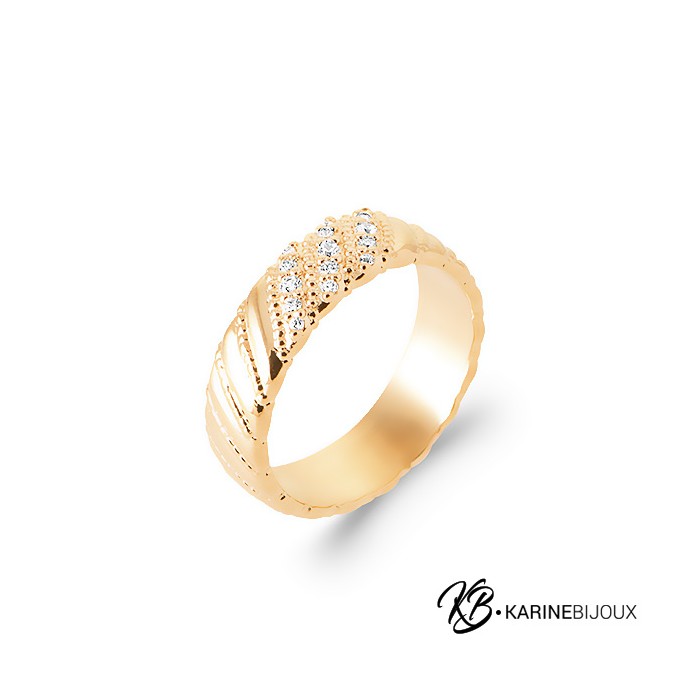 Bague "Lyna" Anneau large torsadé et pavage étincelant plaqué or.