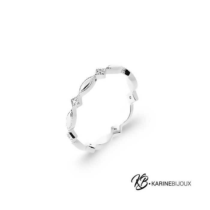 Succombez à la finesse de cette bague en argent rhodié au design poétique. Son anneau travaillé alterne des motifs navettes entourées de petites boules et de délicates étoiles serties d'oxydes de zirconium. Ce jeu de formes crée une silhouette aérienne et étincelante sur votre main. Le fini rhodié assure une brillance durable et une protection contre le ternissement. Un bijou gracieux et intemporel pour illuminer votre quotidien.