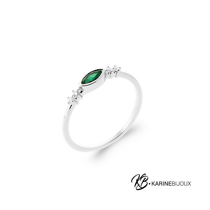 Adoptez le charme magnétique de cette bague en argent rhodié. Elle arbore un cristal teinté d'un vert profond, dont la taille marquise étire délicatement la silhouette du doigt. De chaque côté, deux oxydes de zirconiums apportent une touche de lumière pour sublimer l'intensité de sa couleur. Le fini rhodié garantit une brillance et une protection durable. Un bijou qui allie la modernité de l'argent à une élégance intemporelle.