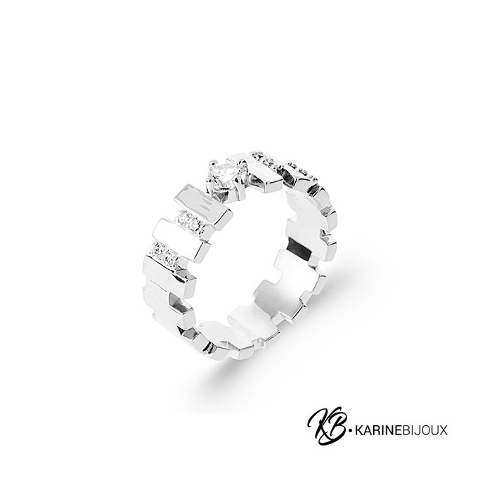 Focus détails : L'alternance entre les rectangles et les zirconiums crée un contraste visuel élégant.