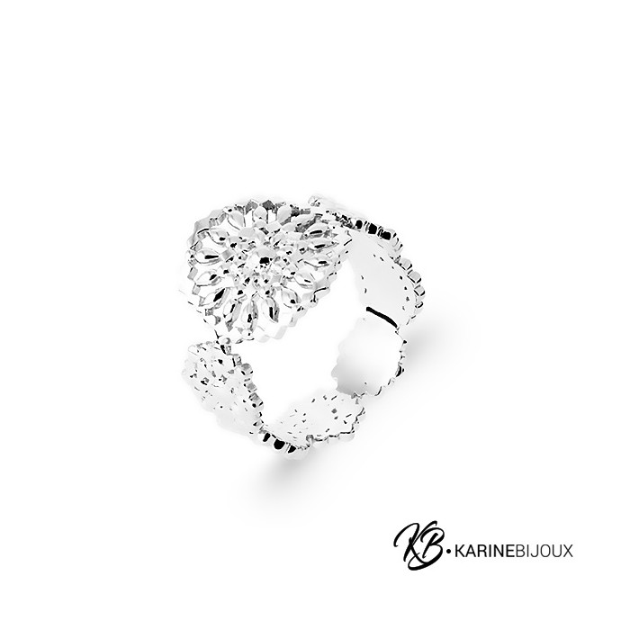 Bague Argent Rhodié Large Fleurs de Dentelle - Bloom Somptueux.