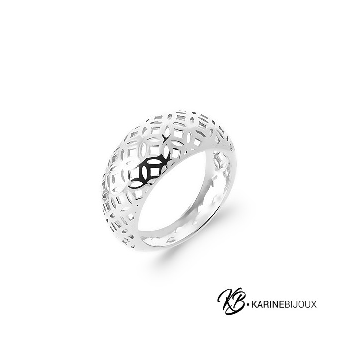 Bague Argent Rhodié Bombée Ajourée - Dentelle Géométrique.