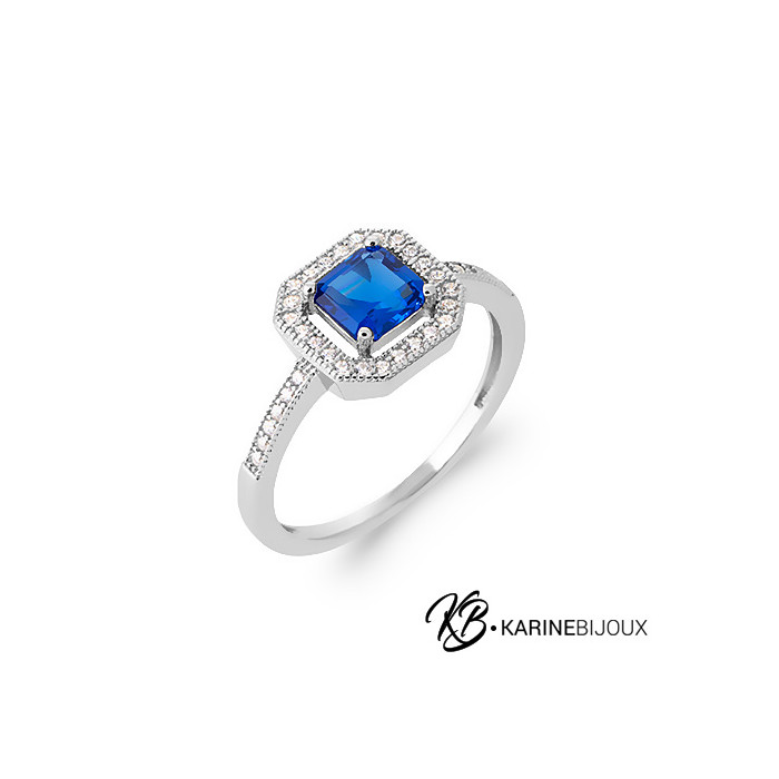 Bague halo bleu argent rhodié Manon.