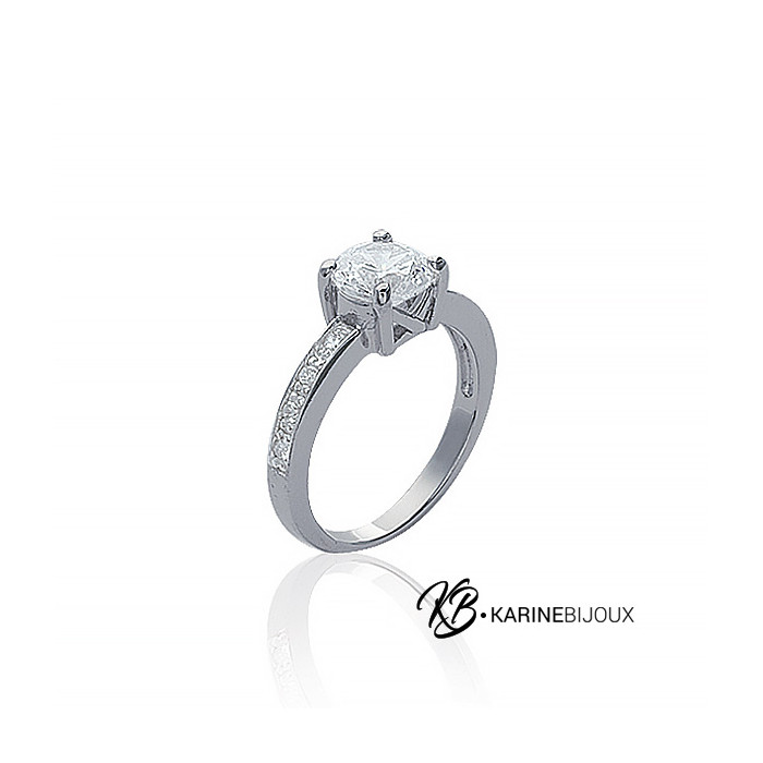 Bague Solitaire "Altesse" en Argent Rhodié et Oxydes.