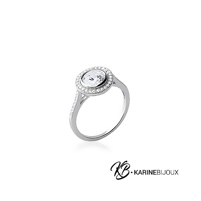 Son superbe éclat provient d'un pavé rond encerclé d'oxydes de zirconium, sublimé par l'argent 925 rhodié. Ce modèle joaillier pèse 2,39 grammes, ajoutant une touche d'élégance et de sophistication à votre collection.