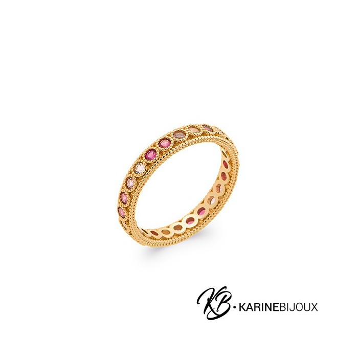 Bague anneau Ellie pierres de couleurs en plaqué or.