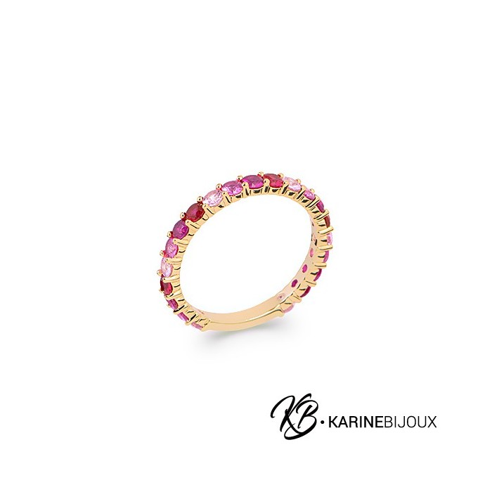 Sublimez votre style avec cet anneau en plaqué or 18 carats, orné d'un magnifique dégradé de pierres synthétiques allant du rose pâle au fuchsia.
