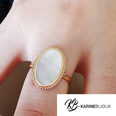 Bague Yna nacre ovale plaqué or.