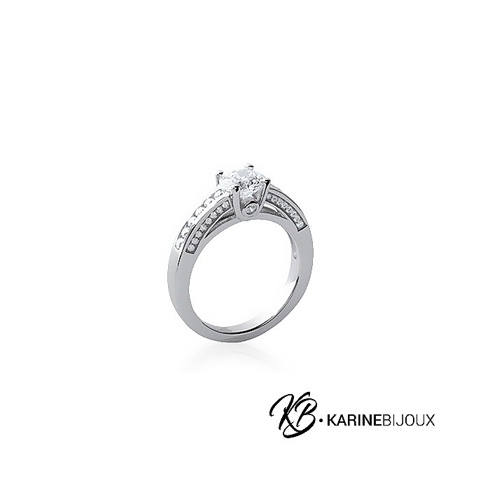 Éblouissant solitaire aux détails subtils, cette bague en argent 925 rhodié est sertie d'oxydes de zirconium et d'un oxyde central maintenu par 4 griffes.