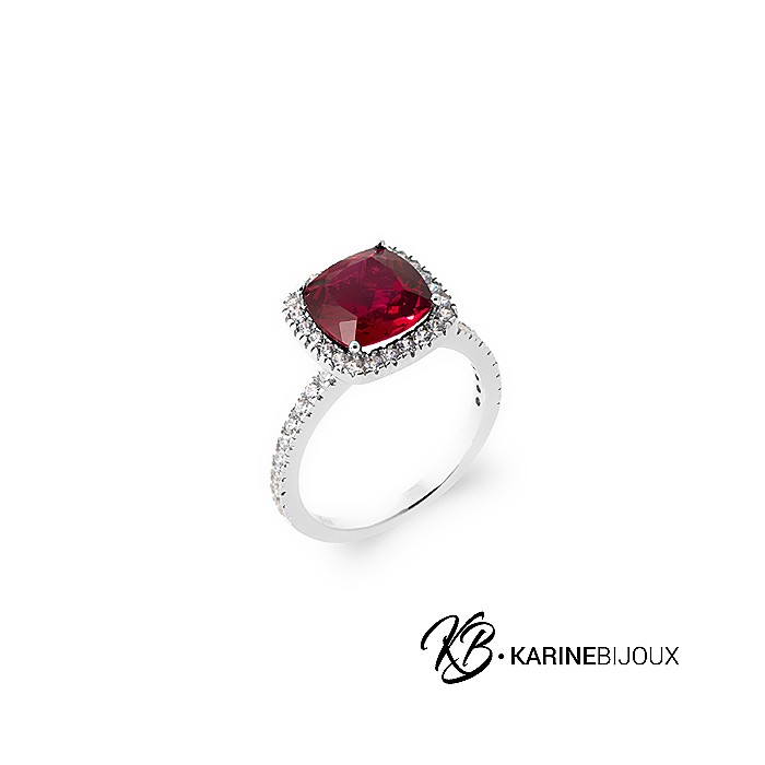 Cette sublime bague est ornée d'un pavé imitant le rubis, avec un oxyde teinté rouge laissant passer la lumière pour un éclat magnifique.